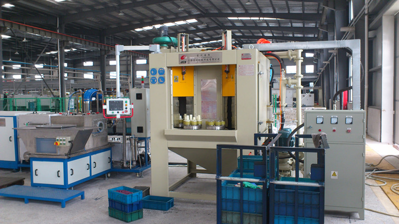 蝸輪軸是高端汽車傳動部門的主要零部件,由于高強(qiáng)度的要求,蝸輪軸需要經(jīng)過熱處理加工,經(jīng)過熱處理加工之后,表面產(chǎn)生一層氧化層,濕式噴砂機(jī)就是目前清理的最優(yōu)質(zhì)方案。 本設(shè)備是根據(jù)我公司針對蝸輪軸類產(chǎn)品和處理要求而專門設(shè)計(jì)的全自動轉(zhuǎn)盤式濕式噴砂機(jī),完全適合貴公司所提供的產(chǎn)品要求。根據(jù)貴公司對產(chǎn)品質(zhì)量及效率的要求,本機(jī)共設(shè)置8個工件裝夾位。大轉(zhuǎn)盤每轉(zhuǎn)動2個工位一停,噴砂艙內(nèi)共布置8支普壓高速噴砂槍,在噴砂區(qū)共設(shè)置2個工位做為噴砂加工位,即有2個工件在進(jìn)行噴砂加工,布置8支噴砂槍對工件需噴砂部位噴砂加工。噴槍可根據(jù)加工需要,隨意調(diào)整其噴射角度,并配有噴槍組前后距離調(diào)節(jié)機(jī)構(gòu),采用PLC程序化控制,配觸摸屏操控面板,自動化程度非常高。 該機(jī)由主機(jī)、收砂器、水霧分離器、溢流沉淀箱、手動砂水檢測器、空氣壓縮系統(tǒng)(客戶自備)、電氣系統(tǒng)等組成。本機(jī)共配置8支普壓高速噴砂槍,加工靈活方便實(shí)用;